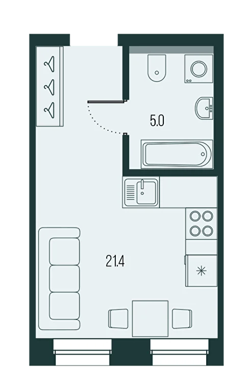 Студии расположены в фасадной части на Провиантскую. Больше света, вид на городскую улицу, престижное расположение. Доходность 6% годовых при этом ниже, чем в дворовой части, но актив ликвиднее
